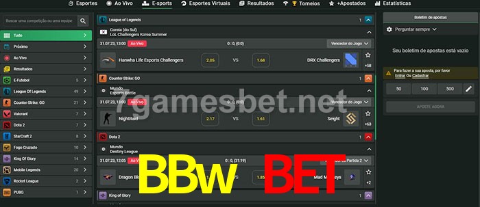 A aposta BBw Bet oferece aos jogadores a experiência mais conveniente de apostas em eSports!